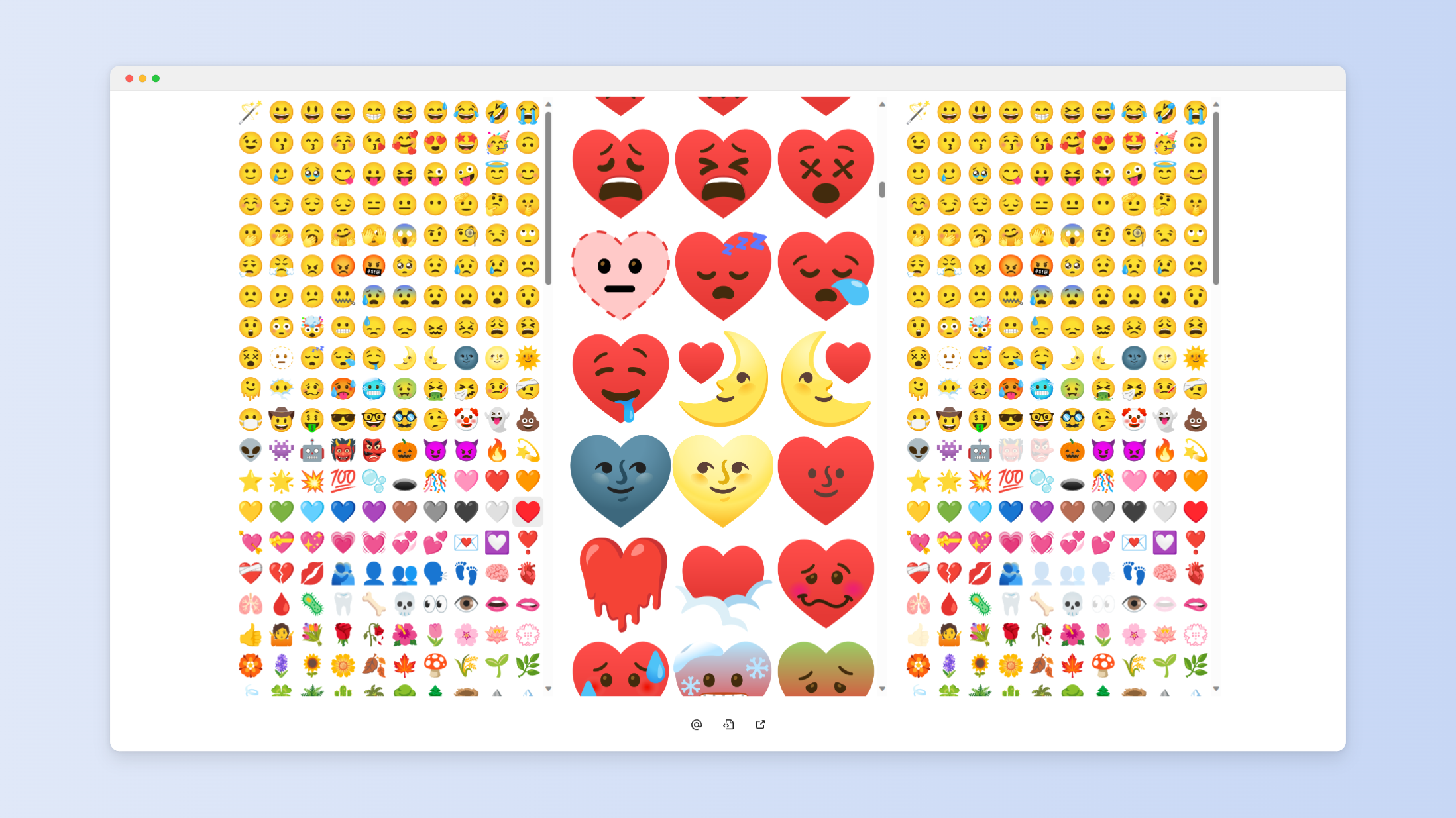 一个 emoji 合成小工具,有趣的地方在于它可用直接看到当前选择的 emoji 可用与其他 emoji 合成后的结果。